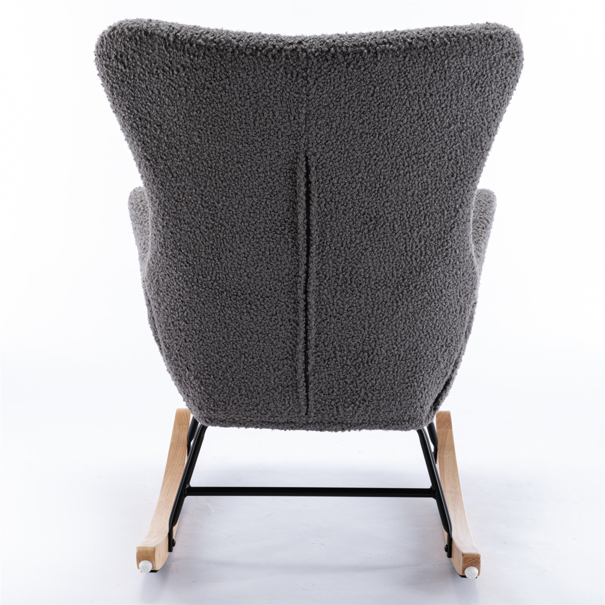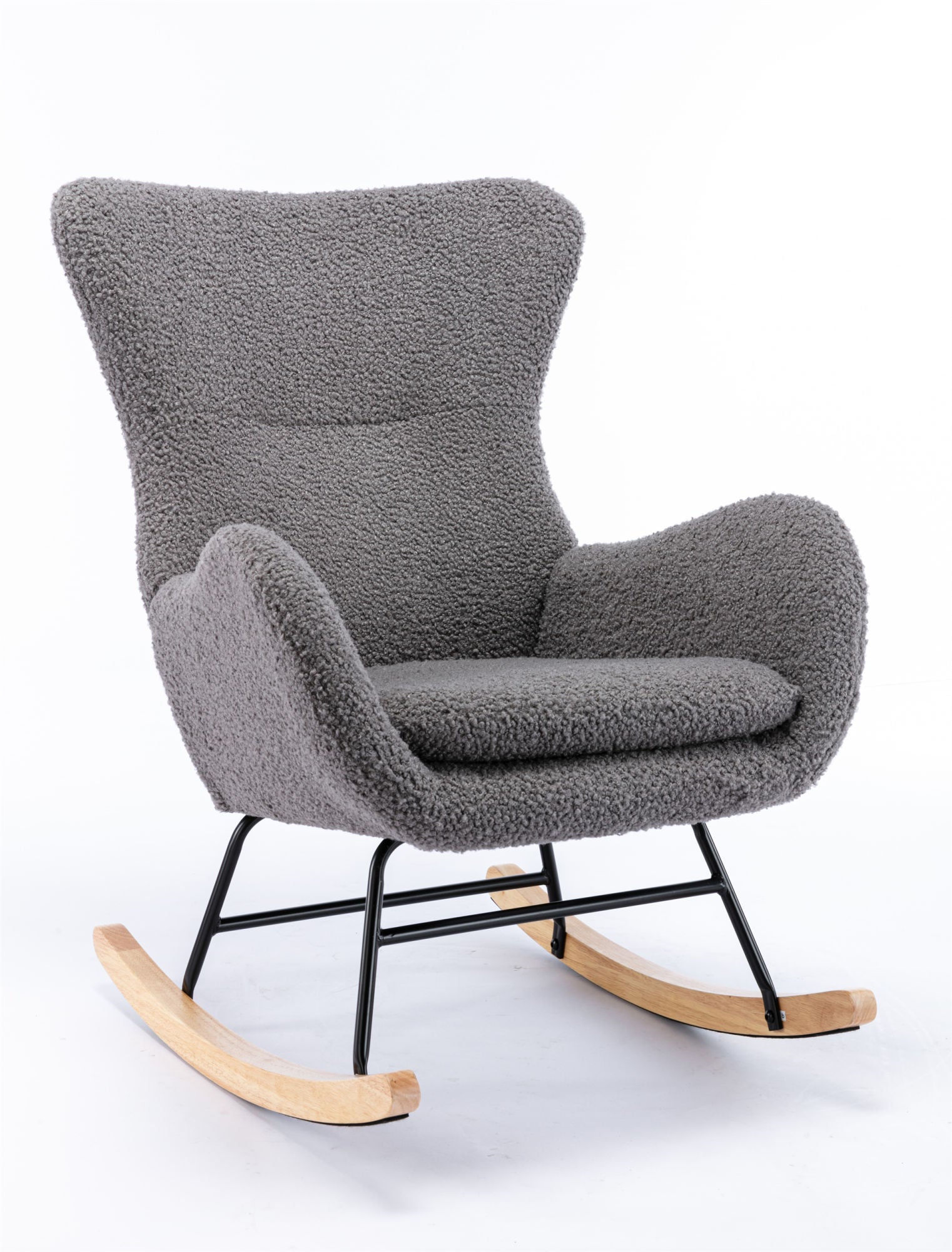 Teddy Fabric Padded Seat Rocking Chair With High Backrest And Armrests