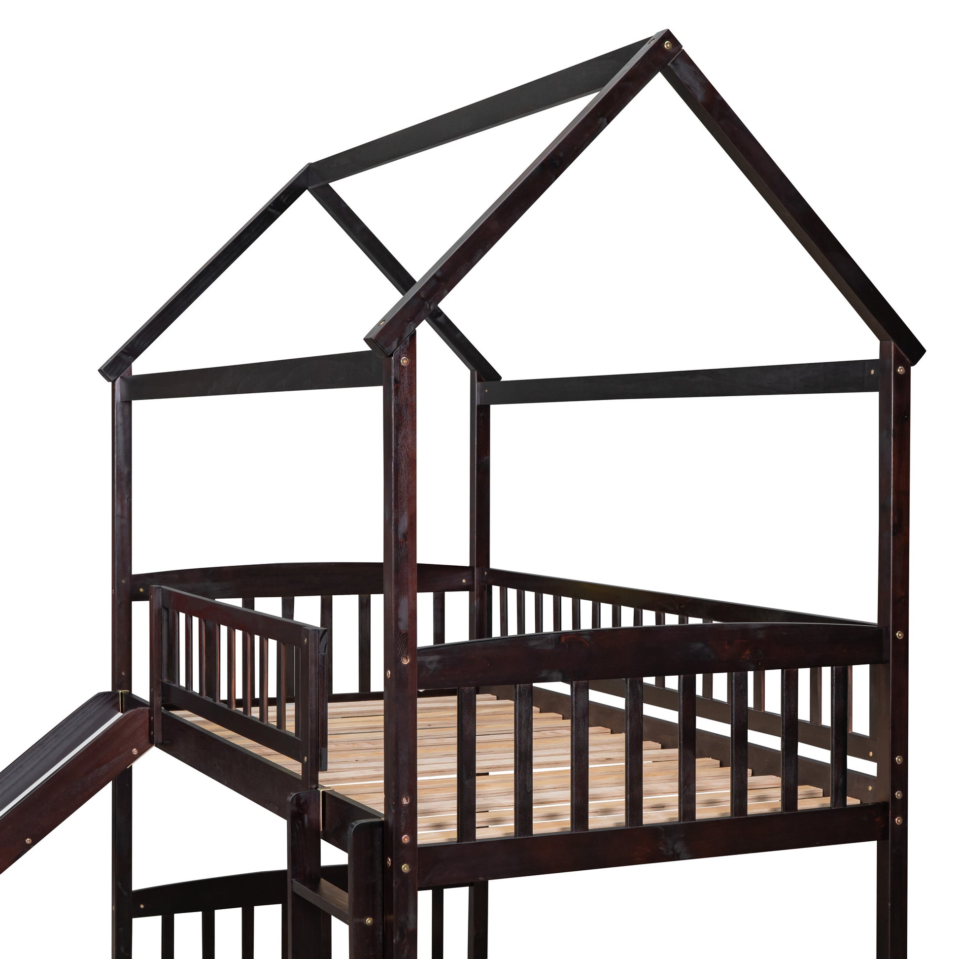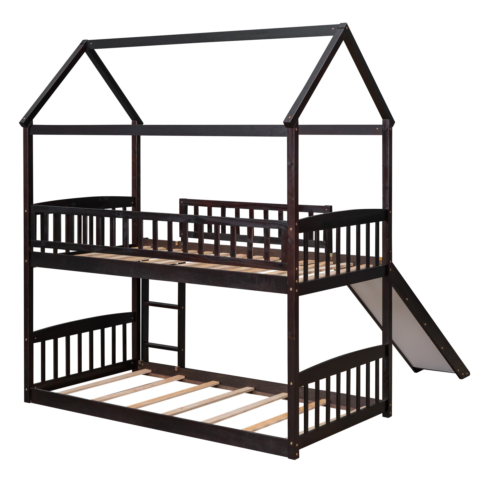Twin Over Twin Bunk Bed with Slide, House Bed with Slide